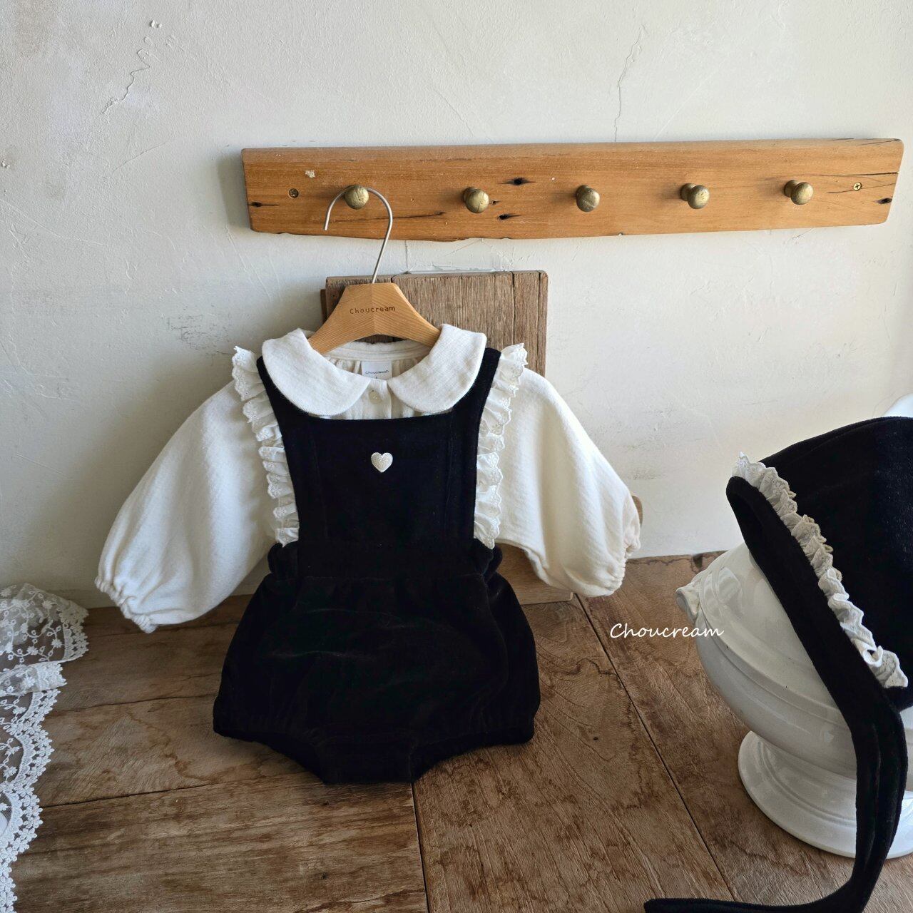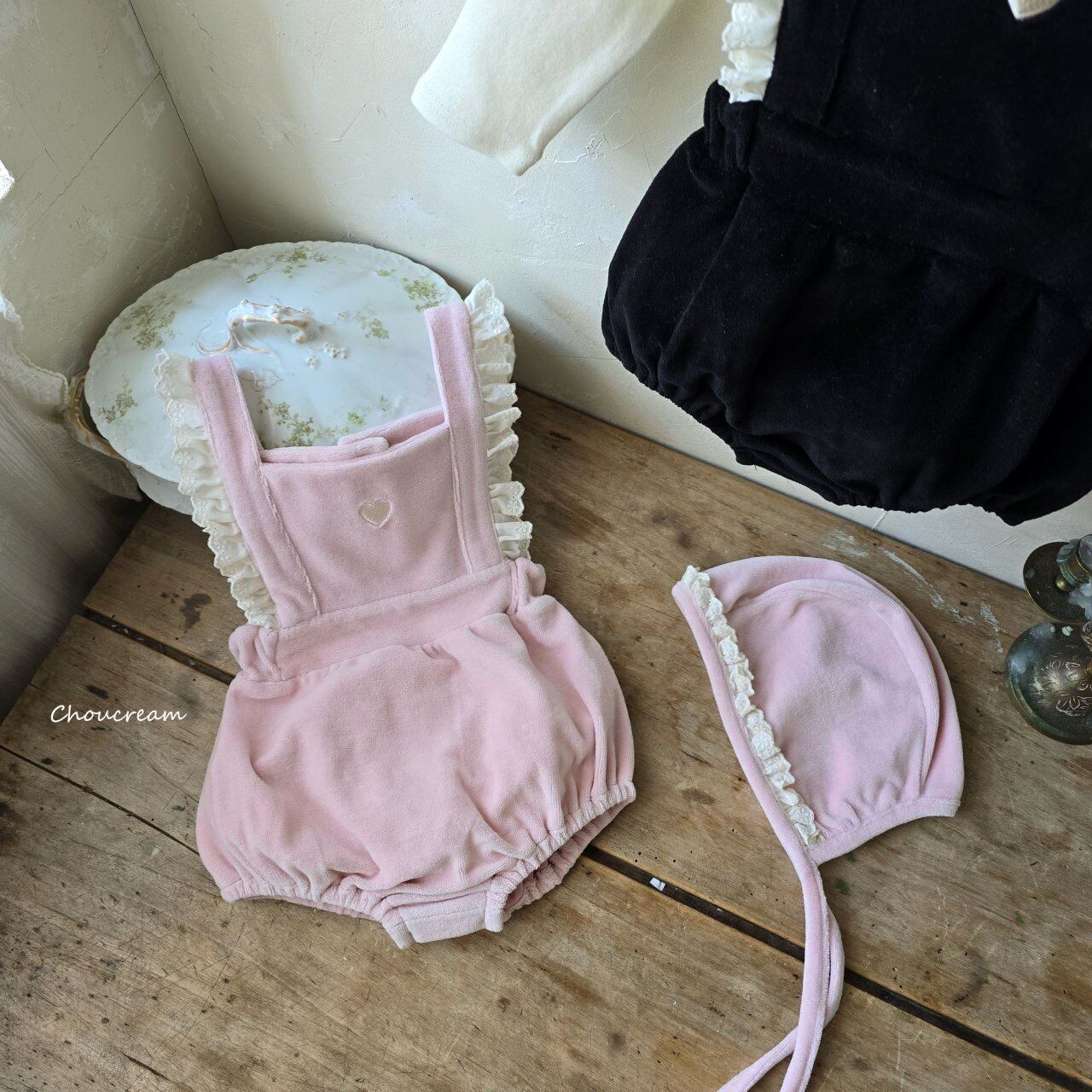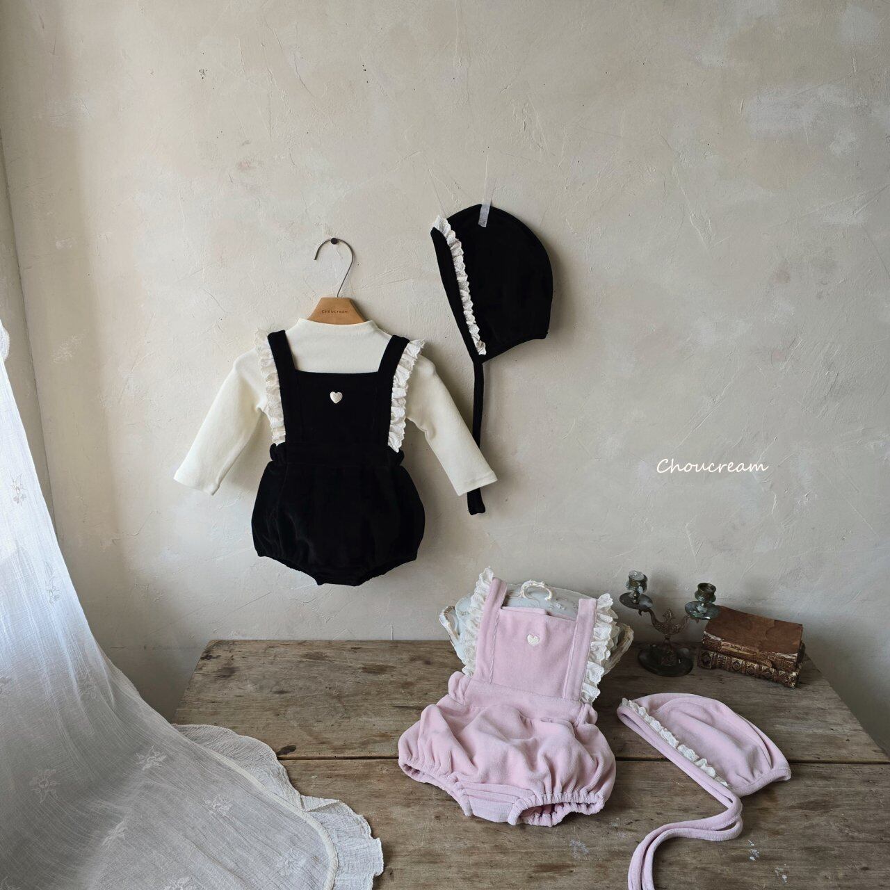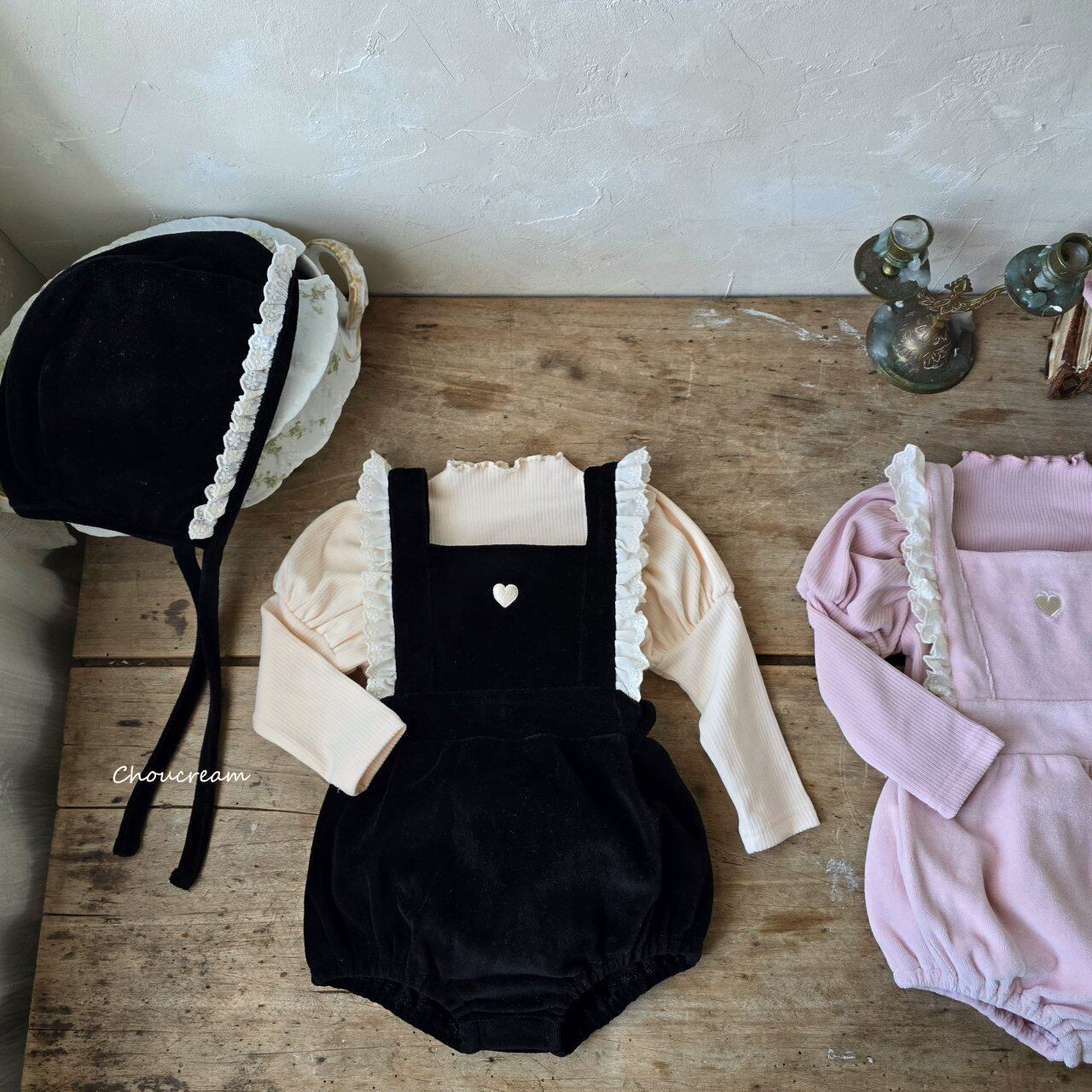 chou cream[取寄]heart salopette (bonnet set) 25winter