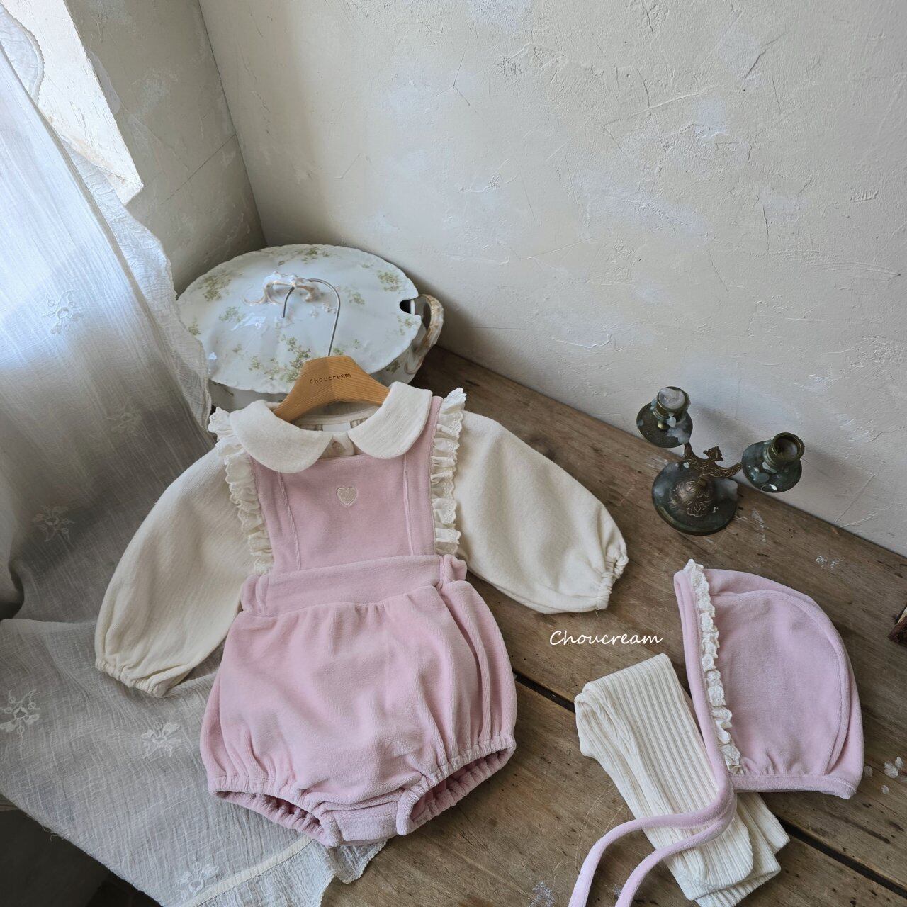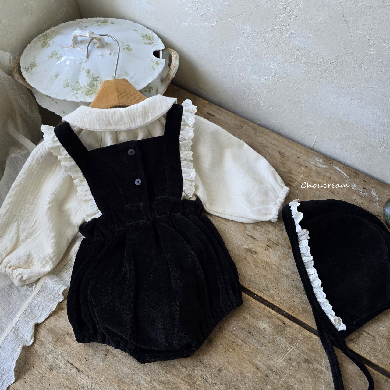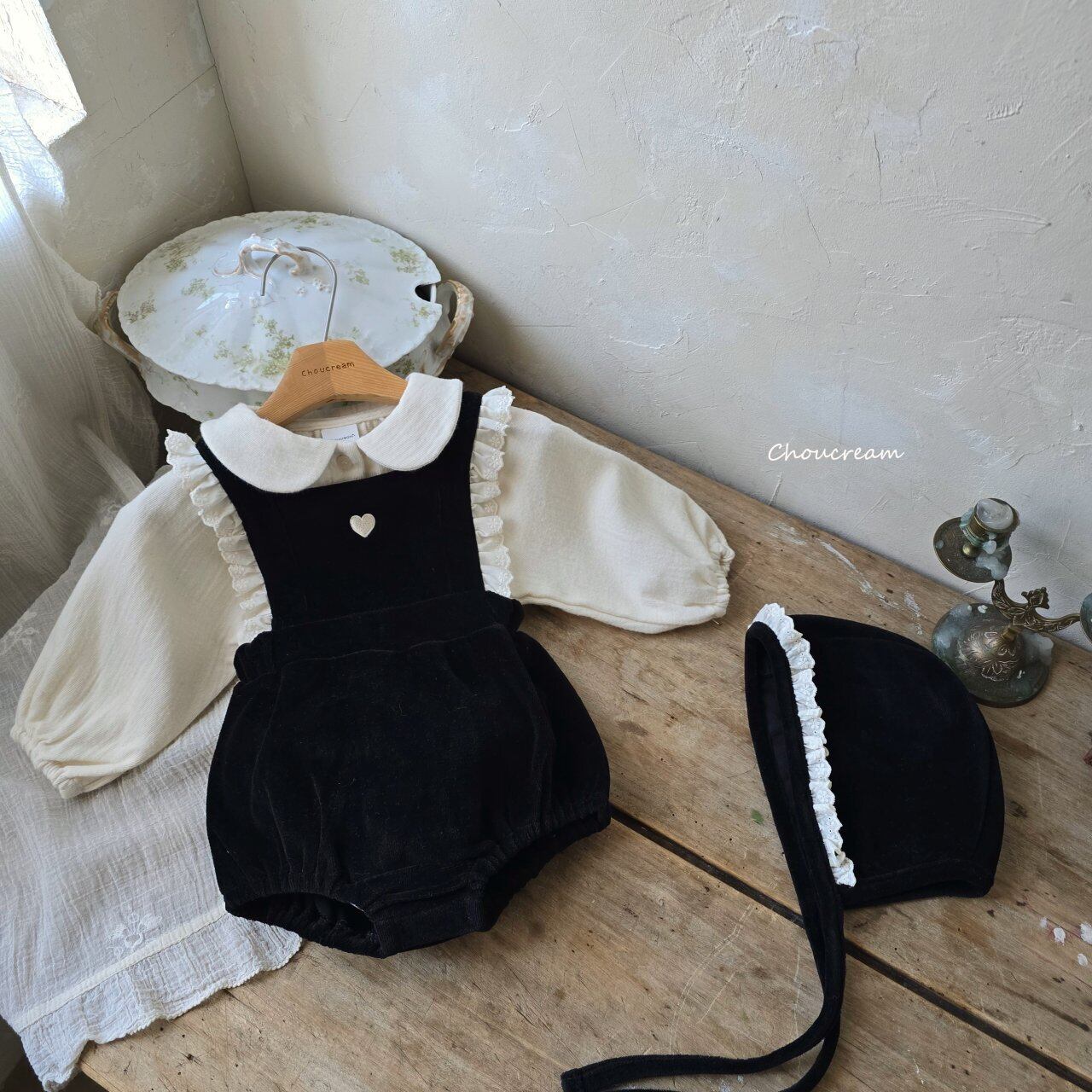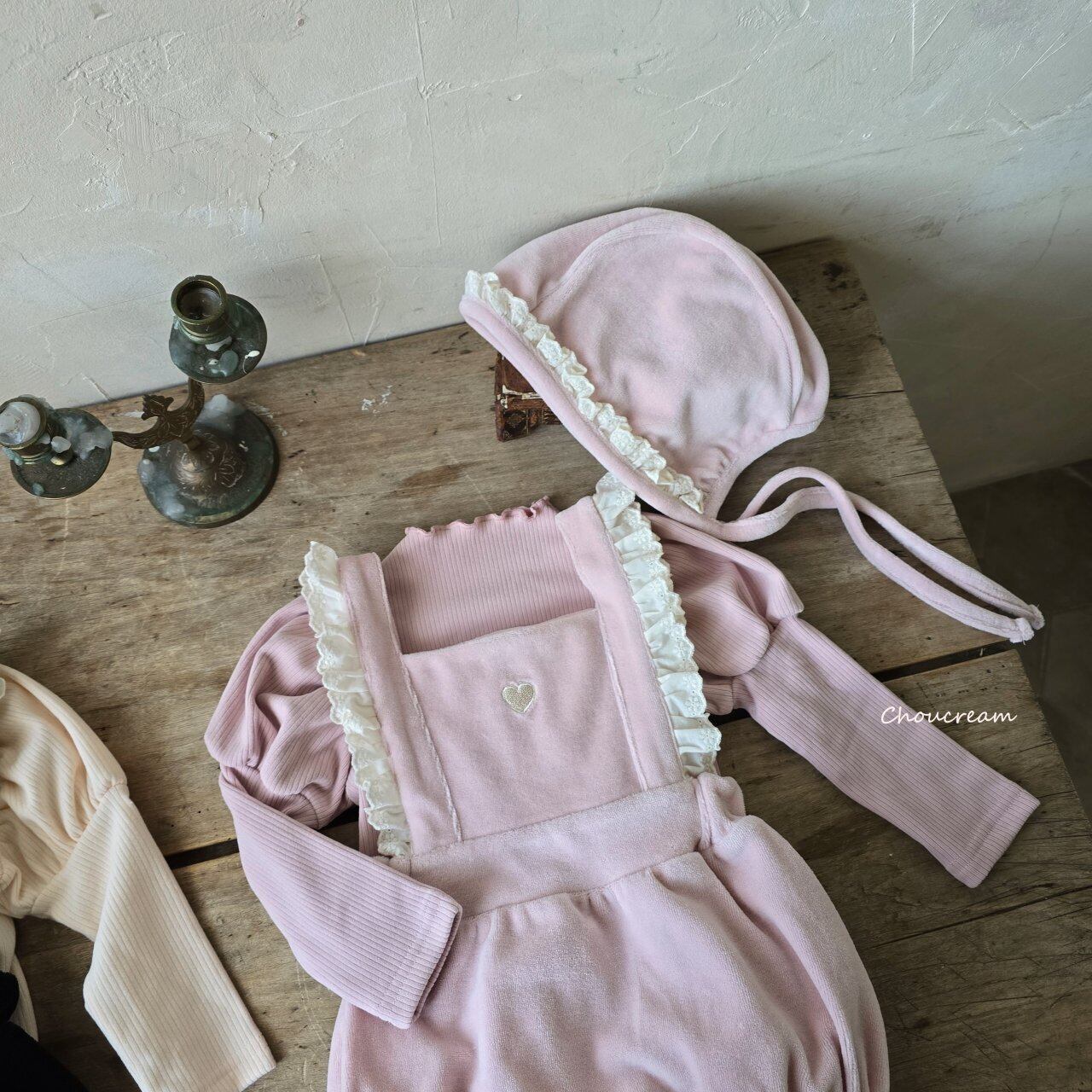 chou cream[取寄]heart salopette (bonnet set) 25winter