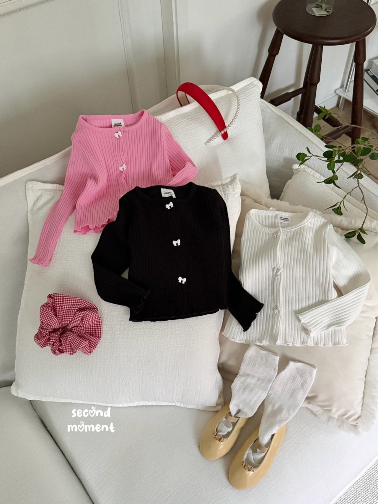 second moment[取寄]ribbon rib cardigan 26spring 리본골지가디건