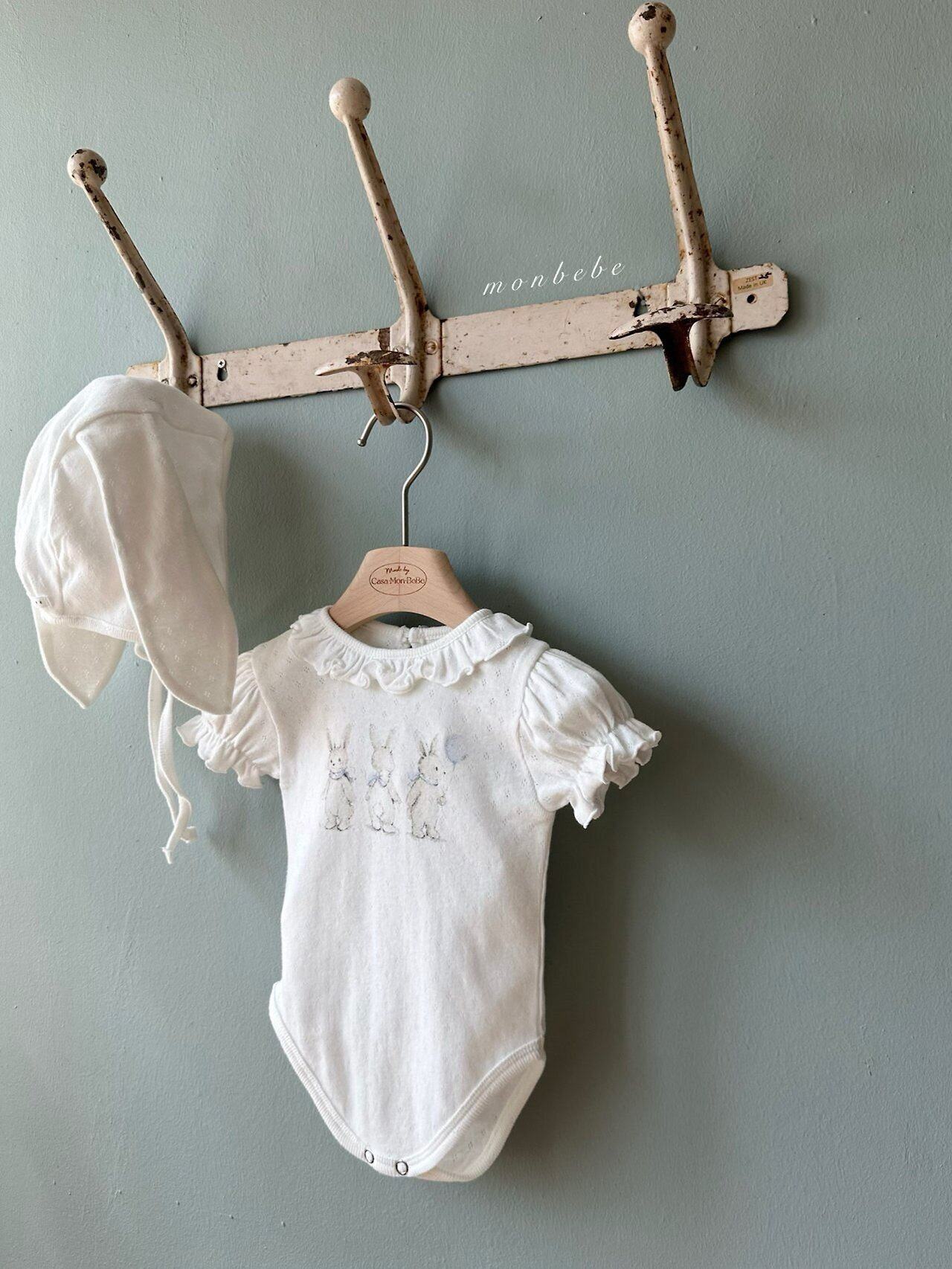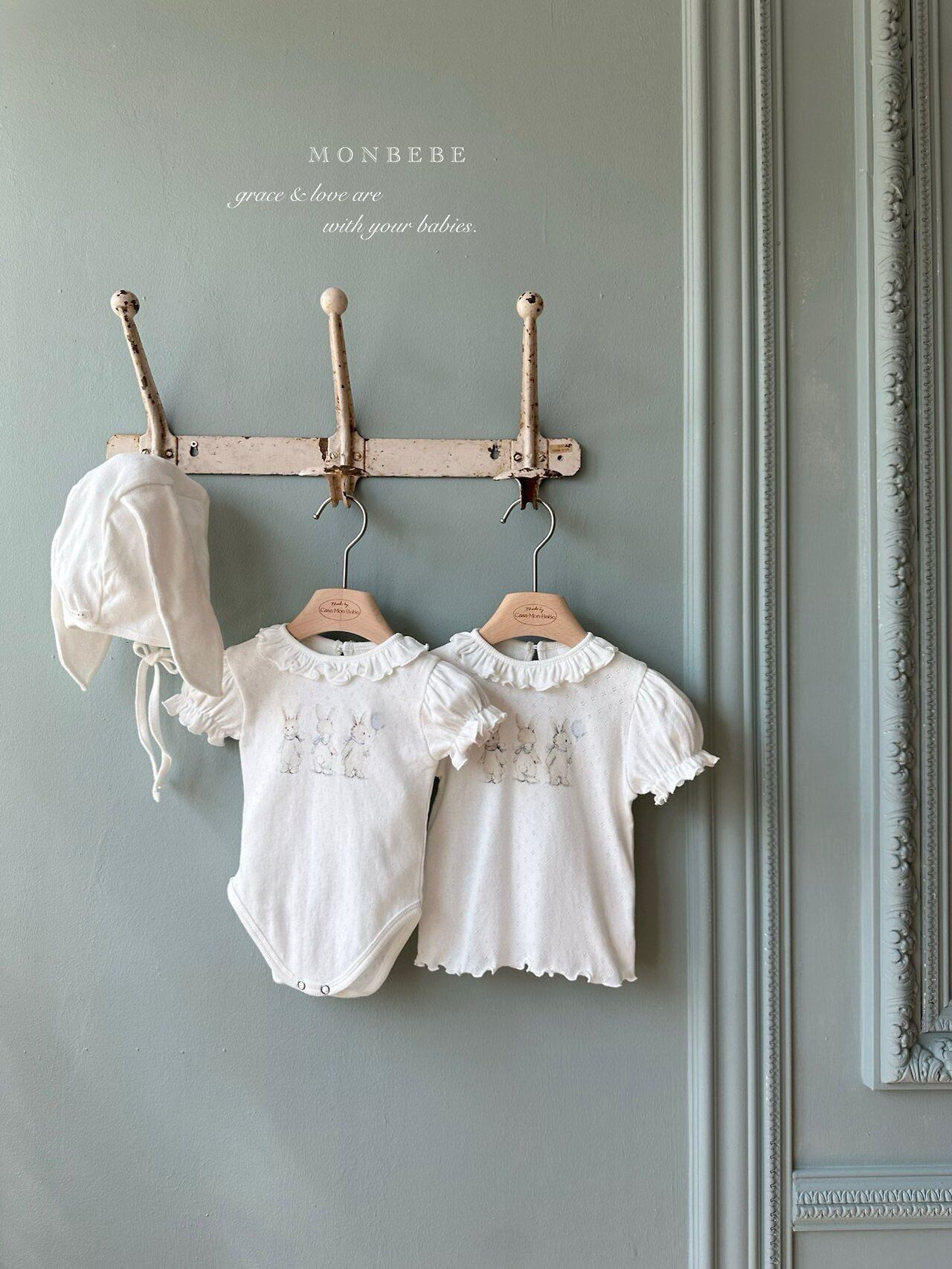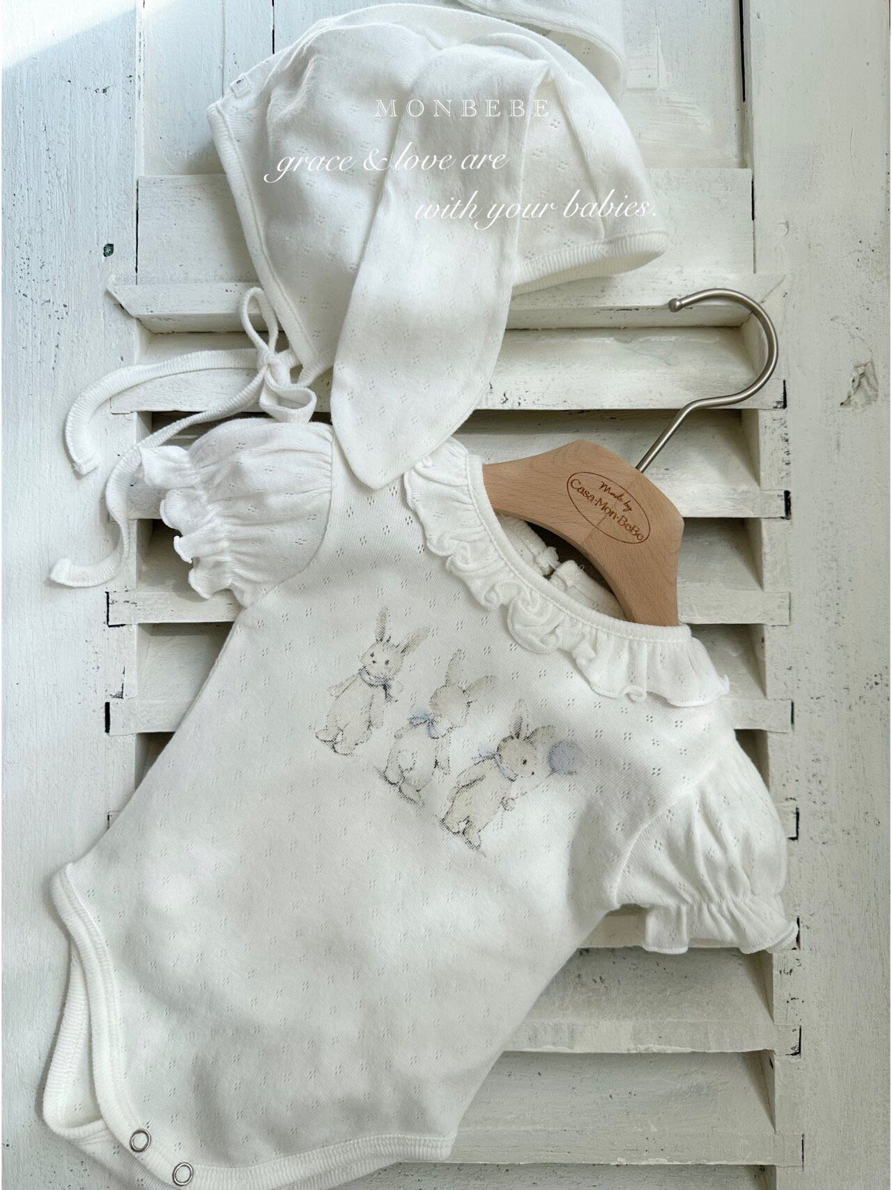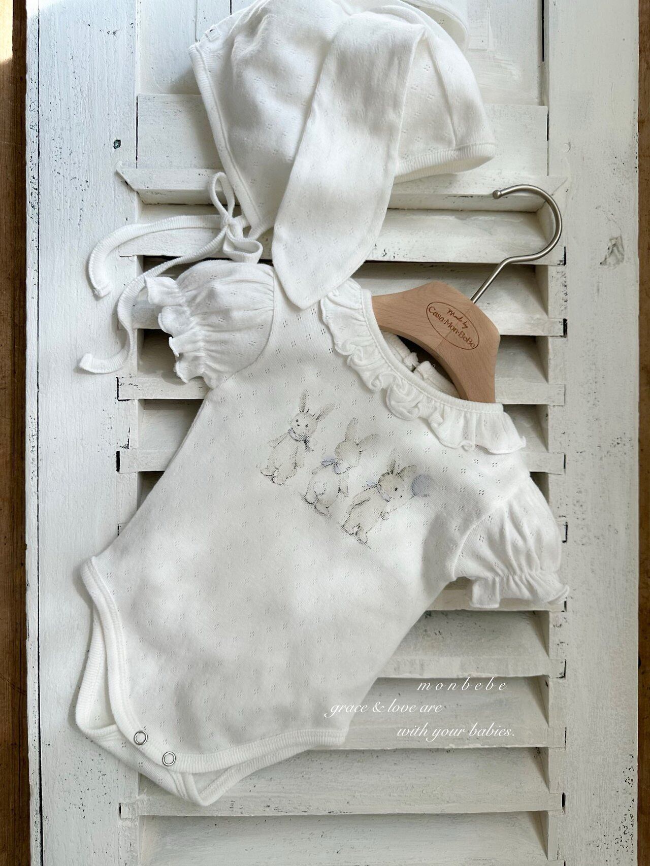 monbebe[取寄]rabbit eyelet suit (bonnet set) 26summer